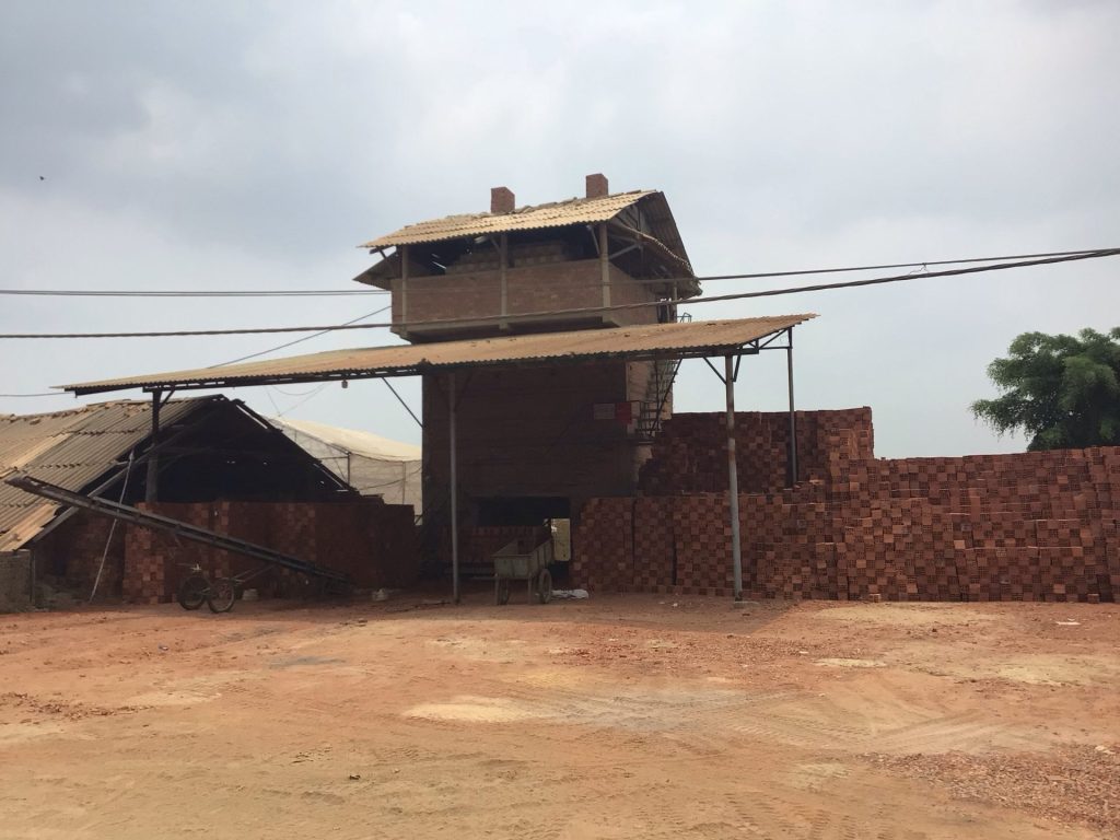 Un peu plus loin, le décor change complètement. J’arrive au village de Vu Bon. Un lac et une carrière approvisionnent de nombreuses briqueteries. Les briques de terre sèchent sous les hangars de plastique. Puis elles sont cuites dans ces énormes fours. J’en ai compté une vingtaine comme celui-ci en à peine un kilomètre.