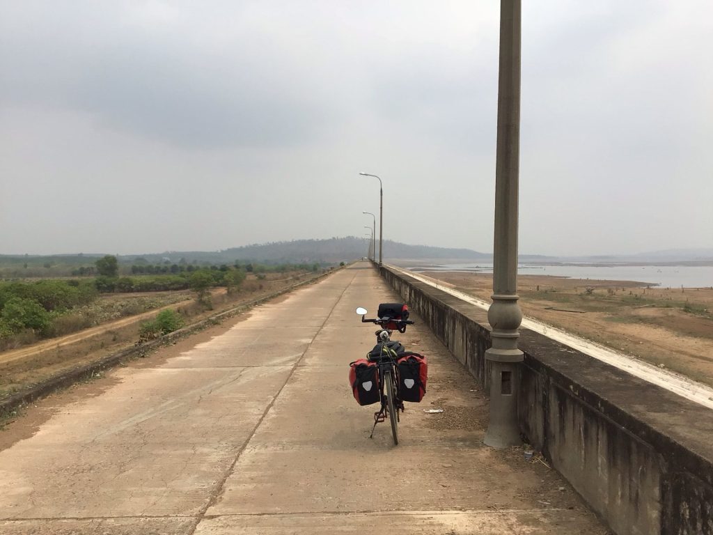 Après avoir longé ce lac, je suis obligé d’emprunter une nouvelle piste pour rejoindre la bourgade de Ea Sup et retrouver une route correcte. Et là, c’est gros chantier également. Je descends de mon destrier de peur de péter une roue tellement c’est défoncé.