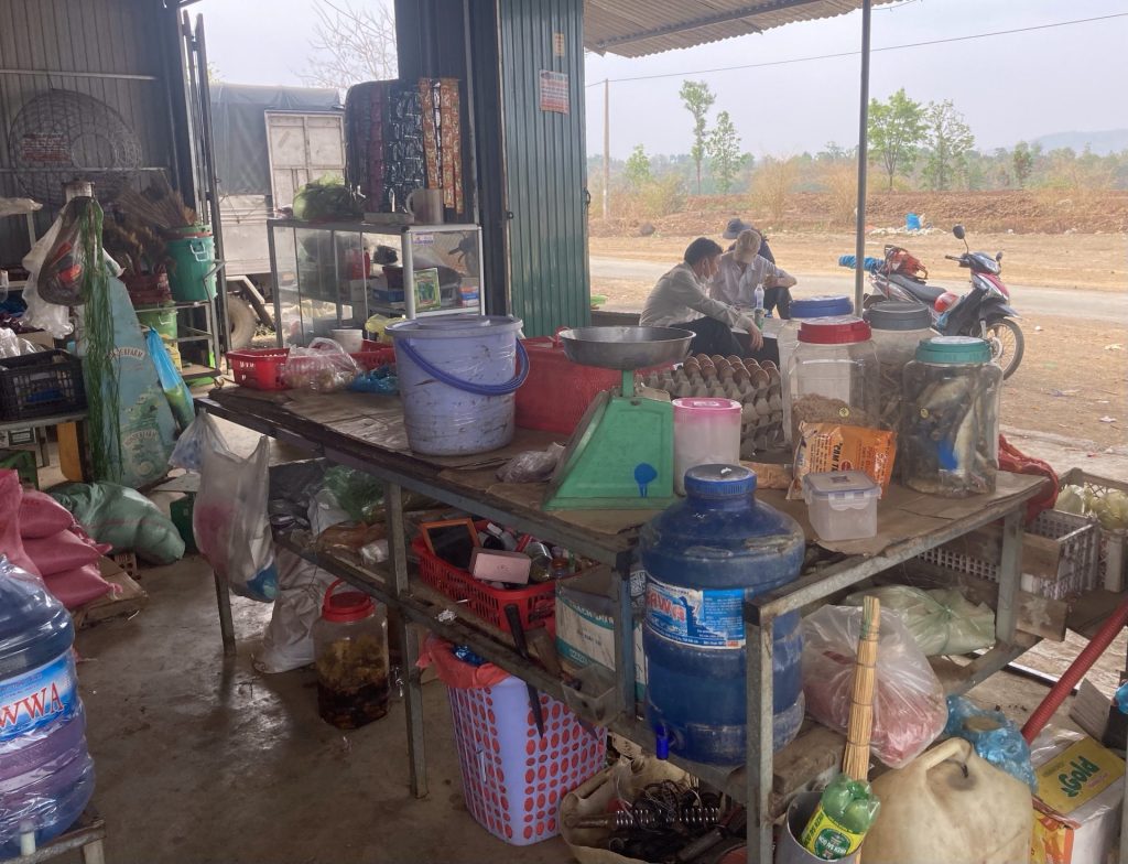 En fin de matinée, j’arrive à Ea Rôk, terme théorique de cette étape. Avant de penser « hébergement », je pense à me remplir la panse. Le vélo, ça creuse. Je trouve une gargote dans ce village tout en longueur. Il suffit simplement de repérer les panneaux « Com » et de regarder s’il y a quelques clients. Ce qui est toujours bon signe en principe. Je m’installe et, comme d’hab’, je déjeune copieusement d’un plat riz-poisson accompagné d’un bol de soupe aux épinards pour mouiller le riz. Ensuite, je m’installe dans un hamac pour ma sieste digestive. Puis, je demande à la famille, attablée à leur tour, s’il connaisse un hôtel dans le coin. Tout cela avec photo et traduction en vietnamien bien sûr. Ils ont beau tourné et retourné mon téléphone, avec la carte affichée dessus, dans tous les sens, je repars sans info cohérente.