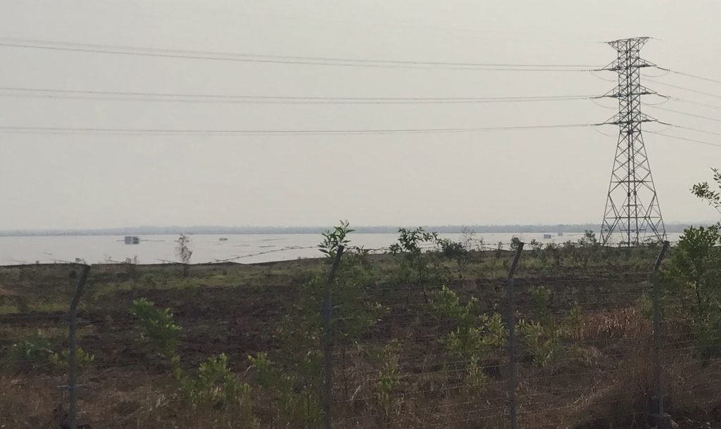 Peu avant 8h00, alors que je file toujours bon train sur cette route sans pratiquement aucun dénivelé. De loin, je pense arriver le long d’un immense lac. En me rapprochant, j’aperçois une grande centrale électrique au bord. Étrange. Y aurait-il un barrage ? En fait, il s’agit d’un gigantesque parc de panneaux solaires. Un peu à l’identique de ce qui est fait dans le désert marocain.