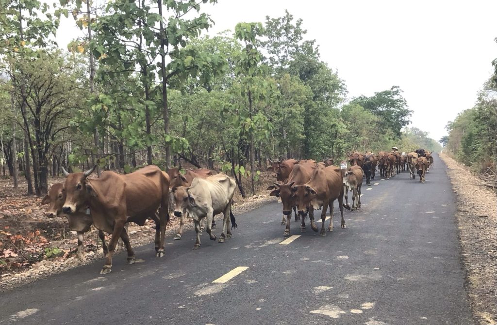 Il me faut à nouveau repartir et relancer la mécanique. La route devient bitumée. J’avance bon train. A part que, de temps en temps, des obstacles imprévus encombrent quelque peu la route. C’est quand même une route nationale, très peu empruntée certes, mais il est étonnant de voir un troupeau bloqué toute la route. Mais c’est l’Asie !