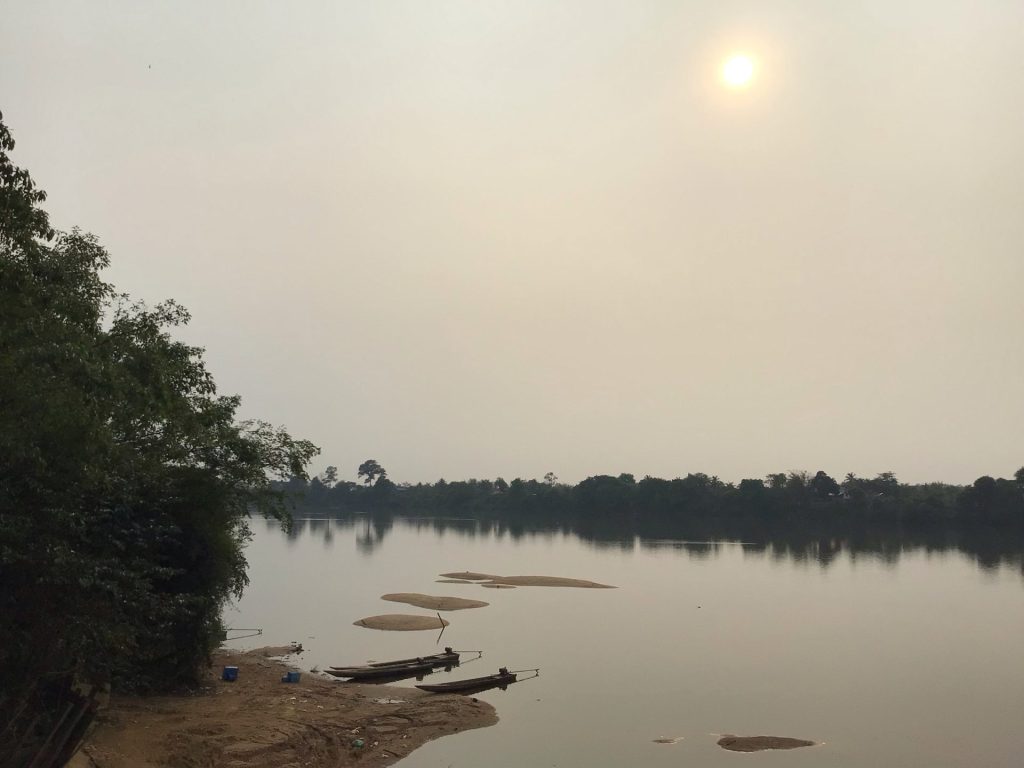 Ça tombe bien. Je suis couvert de poussière. J’en profite pour me faire rincer copieusement. Le problème est que certains plaisantins me versent des seaux d’eau froide dans le dos. J’évite de justesse la farine, signe de renaissance. Je pose mon vélo et suis invité à venir trinquer à l’intérieur de la maison sur la droite. Après quelques bières, douches froides et « Happy New Year Cambodia ! », il est temps de quitter cette joyeuse équipe. Je n’ai pas envie de finir comme hier au restau. Je pars faire un tour dans le village et admirer la rivière Song Se San qui le traverse.