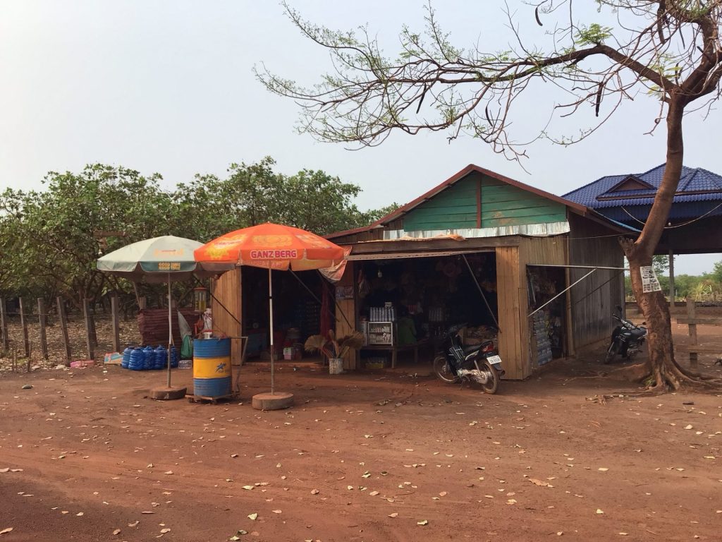 La frontière se trouve bien sur la ligne de crête. Je vais dorénavant emprunter la route 78 pendant une soixantaine de bornes jusqu’à Banlung. Les premiers kilomètres sont costauds avec pas mal de relief. Puis je finis par descendre dans la plaine. Le paysage devient vallonné. Je retrouve ces villages aux baraques de tôles et de bois …