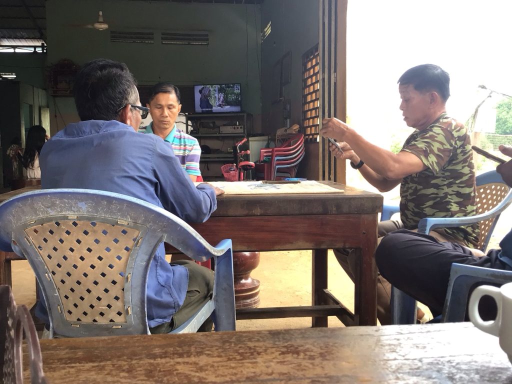 Peu avant 9h00, je m’arrête pour ma pause café tokleu. Je reprends mes vieilles habitudes. Je m’installe à une table et regarde les joueurs de carte. Le monsieur sur la droite s’interrompt un moment pour discuter en anglais.