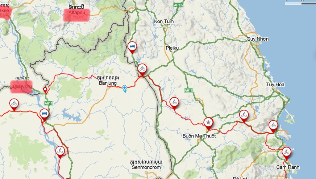 - Continuer au Vietnam en montant au nord par la QL14C, mais sans passer par le Mékong et les 4.000 îles, vu qu’il me reste 3 jours de Visa.
