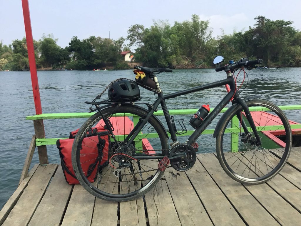 Alors que je sors sur le balconnet pour étendre mon linge, un vieux laotien au grand gabarit, torse nu, assis sur sa chaise devant sa chambre contiguë à la mienne, m’interpelle en français. Il se présente et commence à engager la conversation. Il se nomme Philippe. C’est un ancien directeur d’hôtel du groupe Accor. Depuis 11 ans, il est revenu s’installer sur la terre de ses ancêtres dont le père était instituteur français puis militaire en tant que traducteur sur la base aérienne qui se trouvait sur cette île. Nous papotons un moment avant que chacun ne parte siester. Nous nous retrouverons le soir pour dîner dans le restau avec terrasse donnant sur le fleuve qui se trouve juste en face. La soirée se termine devant un café arrangé glacé après quelques bières. Il est temps de rejoindre mes pénates après cette journée cool à vagabonder en suivant les méandres du Mékong.