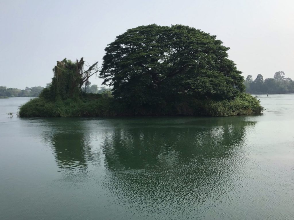 Je reviens vers le fleuve et comprends pourquoi cet endroit a été nommé les 4.000 îles. Ils ont dû recenser toutes ces îles microscopiques avec un arbre dessus. Et, effectivement, il y en a un sacré paquet entre les différents bras de ce Mékong tentaculaire.