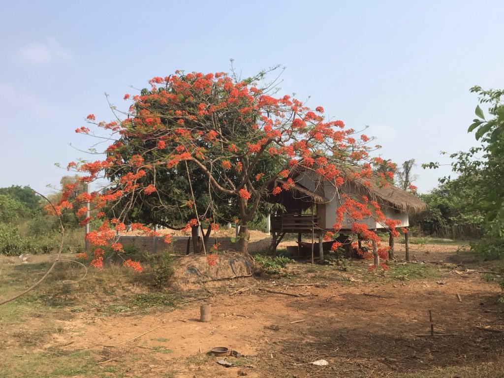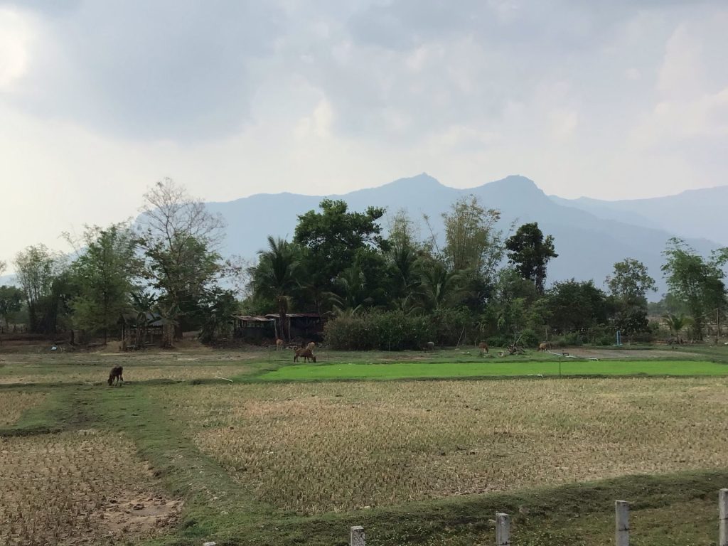 Je me rapproche de Champasak. Au loin sur ma gauche, la montagne Phou Khao barrent le paysage. Le sommet de celui-ci culmine à 665 mètres. Ces monts marquent la frontière avec la Thaïlande. Et oui, déjà. Mais le voyage n’est pas encore terminé.