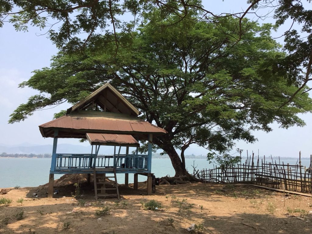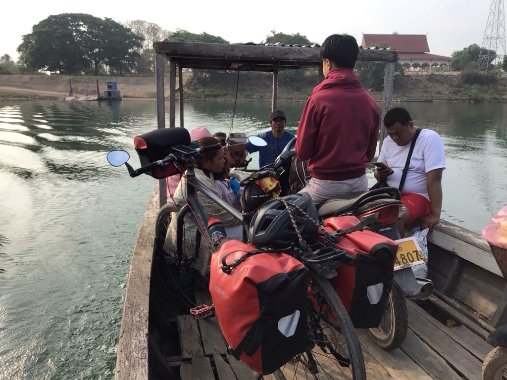 Le garage est toujours fermé. Cela fait 5 jours que son proprio est parti. Il a dû aller fêter le Nouvel An Laotien ailleurs. Tant pis. Je quitte à regret ce franco-laotien retraité et érudit. Je reprends la piste bétonnée pour me diriger vers l’embarcadère et revenir sur le continent.