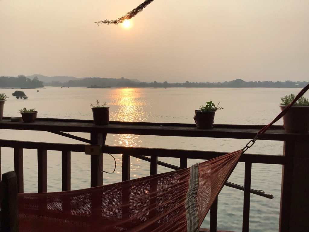 Il n’y a aucun bruit dans cette superbe GuestHouse. Je traîne un peu ce matin. J’ai RDV avec Philippe à 6h30 pour boire le café puis aller chez le réparateur de scooters qui bricole aussi les vélos. Avant cela, je descends vers le fleuve pour y admirer le lever de soleil.