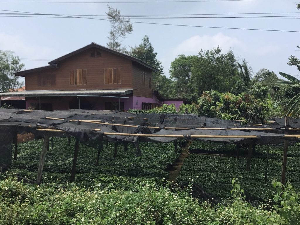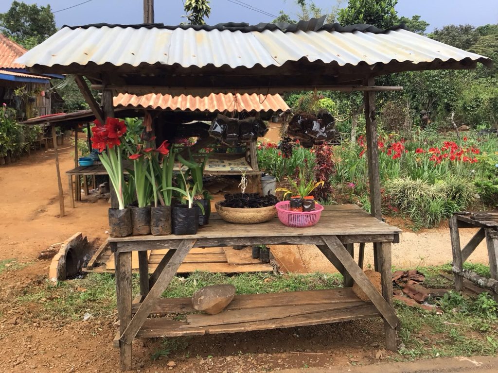 La route est un long faux plat montant que je passe sur la plaque du milieu en jouant enfin sur les pignons arrières. Ce n’est pas très fluide mais ça passe quand même. A 8h00 pétantes, je passe devant la première factory de café dénommé Café Bachieng. Je m’y arrête pour déguster mon premier express dans un cadre fort agréable de pierre et de bois.