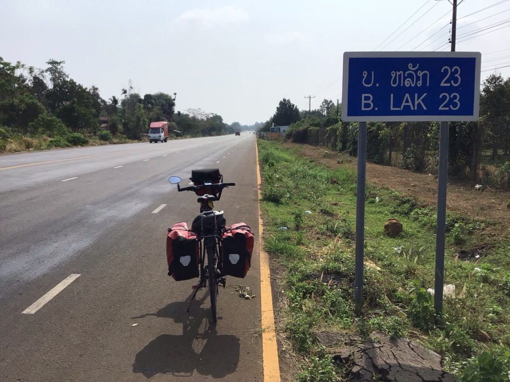 Après cette pause fort sympathique, je retrouve ma grande route. J’enchaîne les traversées de village B. LAK nn (B pour Ban – Village et nn pour le nombre de kms depuis Pakse). Je dois arriver à B. LAK 50 !