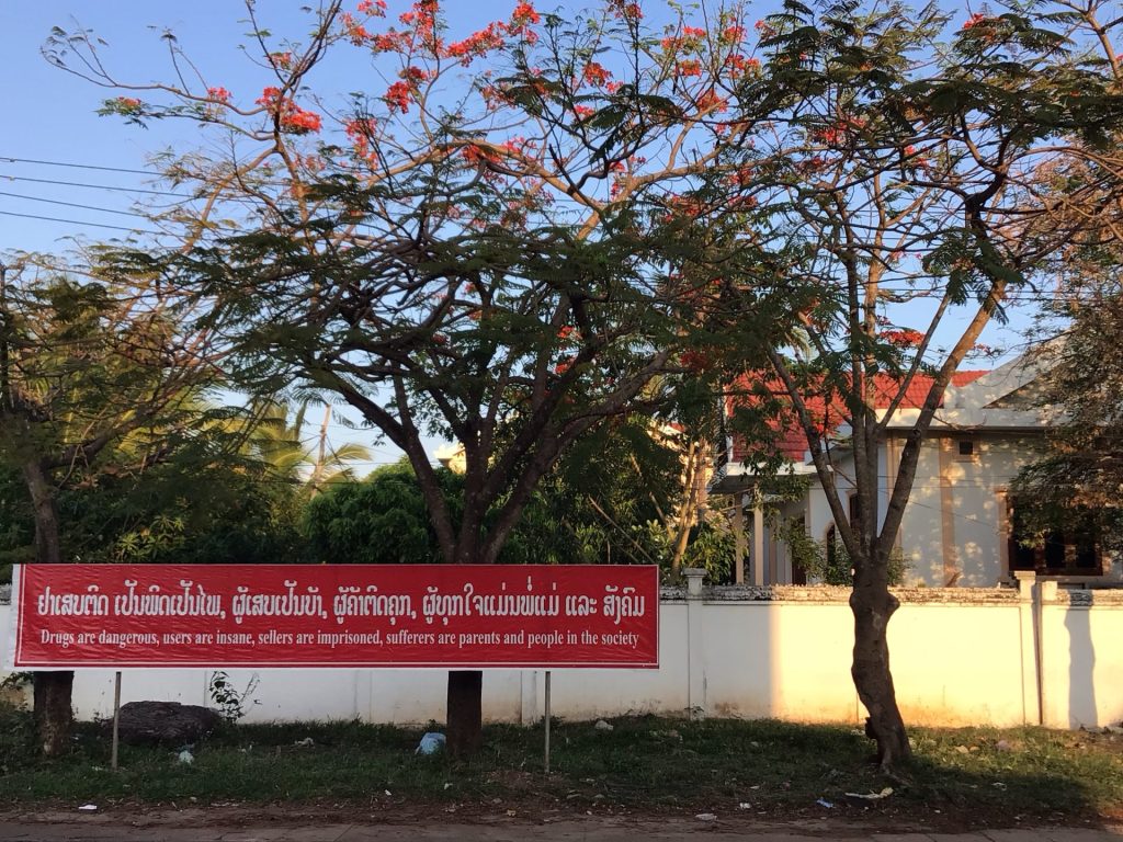 Je reviens ensuite vers le centre. Au passage, je tombe à nouveau sur ce panneau de prévention contre l’usage et la vente de drogue. Contrairement à la Thaïlande où le cannabis est en vente libre, ce n’est le cas dans les autres pays asiatiques.
