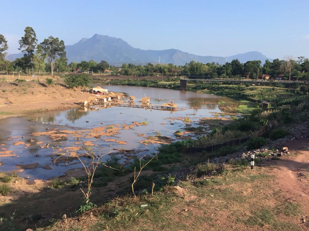 Je rentre vers 13h00 pour faire une grosse sieste. Cette fois-ci, je ne mets pas le réveil. La chaleur est tellement étouffante que je ne vais pas aller me balader maintenant. Mon site de météo indique 36°C à l’ombre. Au soleil, c’est du +40°C. D’ailleurs, mon ami Loïc, que j’ai eu au téléphone hier avant qu’il ne reparte au Brésil son pays de coeur, m’informait que l’Asie du Sud-Est était sous la canicule. Cela promet pour les jours qui viennent. Vers 16h30, alors que le soleil entame également sa descente, je pars me balader en ville. Je me dirige d’abord vers la rivière Xe Don qui se jette dans le Mékong à Pakse. Comme souvent, les rives ne sont pas exploitées.