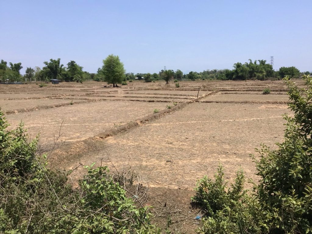 Après avoir ôté mon coupe-vent, je repars le ventre quelque peu barbouillé. De plus, après une dernière longue descente en pente douce, j’arrive dans la plaine. Je suis à 150 mètres d’altitude. J’ai perdu 1.200m depuis ce matin. La chaleur devient à nouveau prégnante. Quant aux paysages, ils retrouvent leur aridité. De toute façon, je suis dans l’obligation de m’arrêter à Salavan où se trouvent des hébergements. Après, c’est à nouveau la pampa.