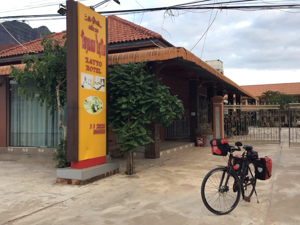 Par contre, en ce 1er mai, toutes les gargotes sont fermées. J’ai fini mes 2 bananes restantes mais ce ne sera pas suffisant pour cette étape. Je prends la route et je trouverais bien quelque chose à manger sur la route. Je quitte donc Xayyo Hôtel situé au pied de la montagne. A ce sujet, je n’ai toujours pas saisi la différence entre certains hôtels (comme celui-ci) et les GuestHouse.