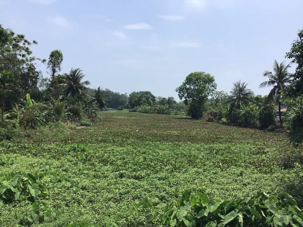 Comme chaque jour en milieu de matinée, le ciel s’est dévoilé. Le soleil tape à nouveau fort en cé début d’après-midi. Je me retrouve à nouveau sur une charmante route. De plus, il est l’heure de la sieste; la circulation y est vraiment très calme. Je traverse le village de Thuan Loc et enjambe une rivière recouverte par des plantes aquatiques. Nouveau superbe camaïeu de vert sur fond bleu azur.