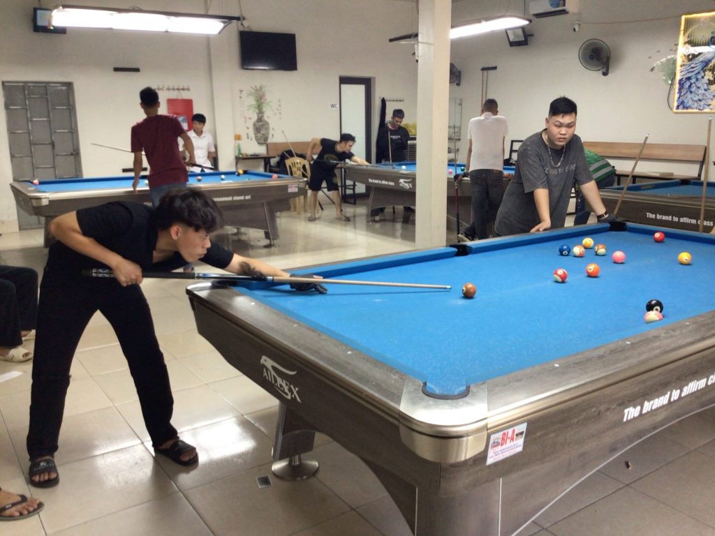 Comme l’homme au torse nu est le patron du restau, la bière coule à flot du fût mis en perce. Et, comme chacun fait un vœu avant de trinquer, je repars avec 4 demis dans le gosier. Heureusement que j’avais bien déjeuné et m’étais reposé avant … Je laisse mes acolytes alcooliques anonymes à leur beuverie avant de repartir à la recherche du Cà Phé ô combien désiré que l’homme au tee-shirt blanc m’a indiqué. Mais il est fermé. Je me balade encore avant d’apercevoir une enseigne «coffee ». J’entre à l’intérieur. Surprise ! C’est une salle de billard. La jeune salle explose de rire en me voyant entrer. Il faut dire qu’avec mon pantalon bariolé et éléphanté thaïlandais et ma liquette blanche, je ne passe pas inaperçu. En guide de café, l’un d’eux me montre un frigo contenant des canettes de café frais. Cela fera l’affaire. Je me pose pour regarder tous ces jeunes jouer au billard américain.