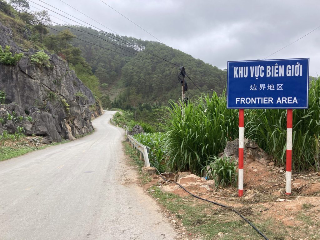 J’approche de la bourgade de Dông Van. Je ne suis qu’à quelques encâblures de la frontière chinoise. Un panneau signale d’ailleurs que je rentre dans cette zone frontalière. Je n’ai jamais été aussi prêt de la Chine, pays qui ne m’attire pas spécialement au vu du comportement de ses ressortissants croisés dans ces pays d’Asie du Sud-Est.