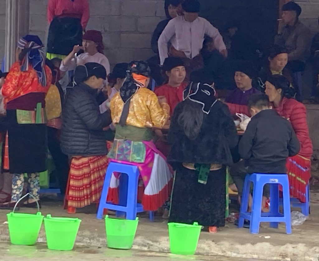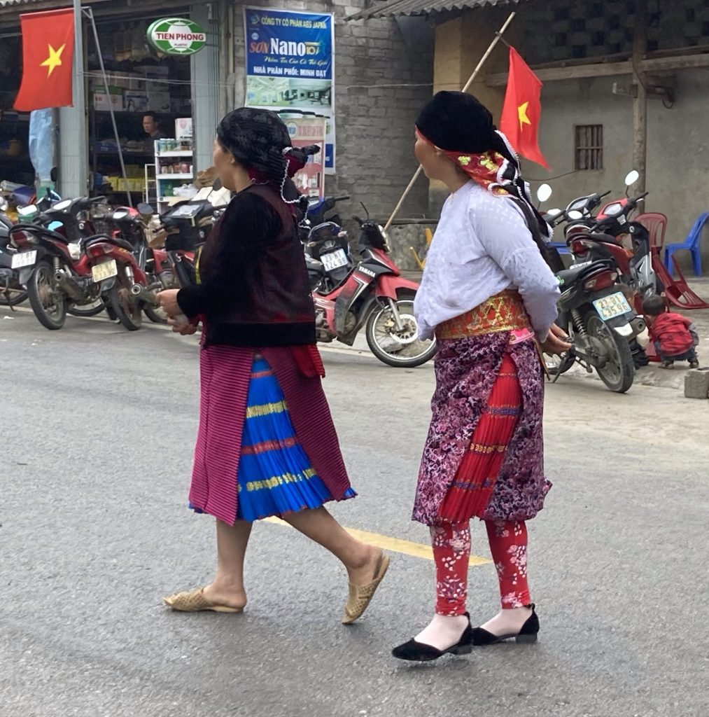 D’eux d’entres quittent une des tables et traversent la route. Les Hmong (ou Mong ou Miao en vietnamien)sont un groupe ethnique d’Asie du Sud, présent au Sud de la Chine, et au Nord de tous les pays de l’Indochine au sein d’une région appelée Zomia. Ils sont plus d’un million à vivre dans les montagnes du nord de la Thaïlande – j’étais déjà allé dans un village Hmong au-dessus de Chiang Mai – , du Laos et du Vietnam. L’ethnie Hmong est divisée en groupuscules locaux nommés par des couleurs (blanc, fleur, rouge, noir, vert et miao) qui se rapportent à leur vêtement.