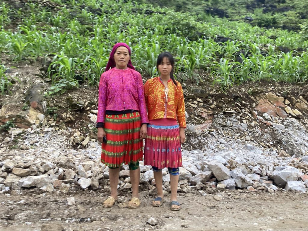 Et, je peux aussi admirer les costumes de cette maman avec sa fille qui arrive du village plus bas. Je leur demande si elles veulent bien poser pour moi. Elles acceptent avec le sourire. Pour vous remercier, je vous mets en avant sur ma page de garde.