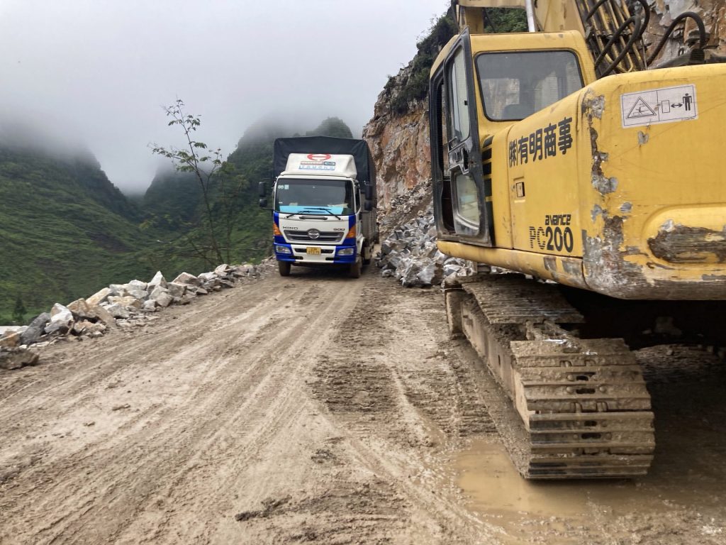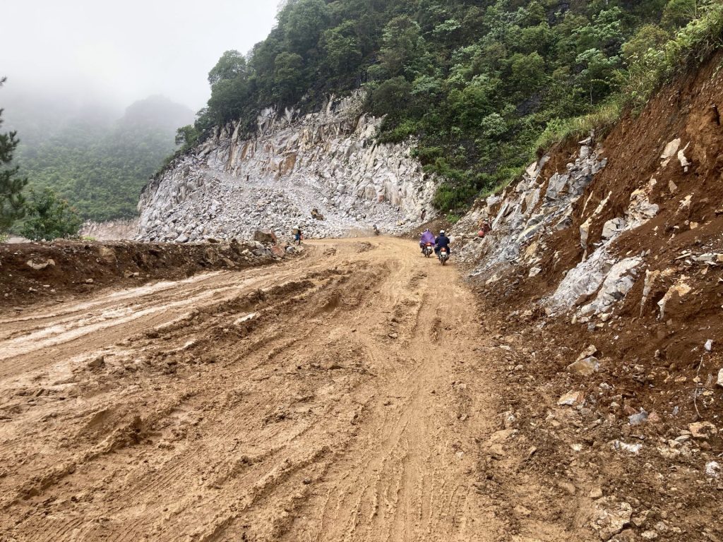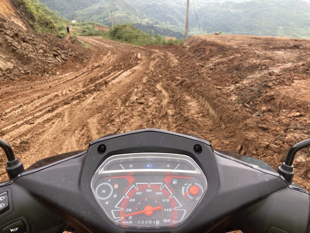 Et cela dure pendant quelques kilomètres. Les Hmong continuent, eux, à cheminer à pied sur cet axe difficilement praticable. Je pense à Roger avec son vélo dans ce bourbier. J’espère qu’il va faire demi-tour et reprendre la route QL4C.