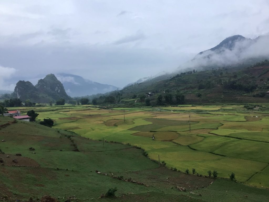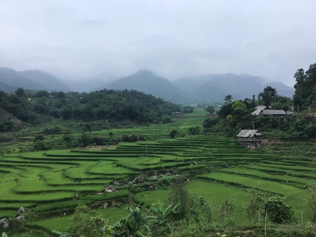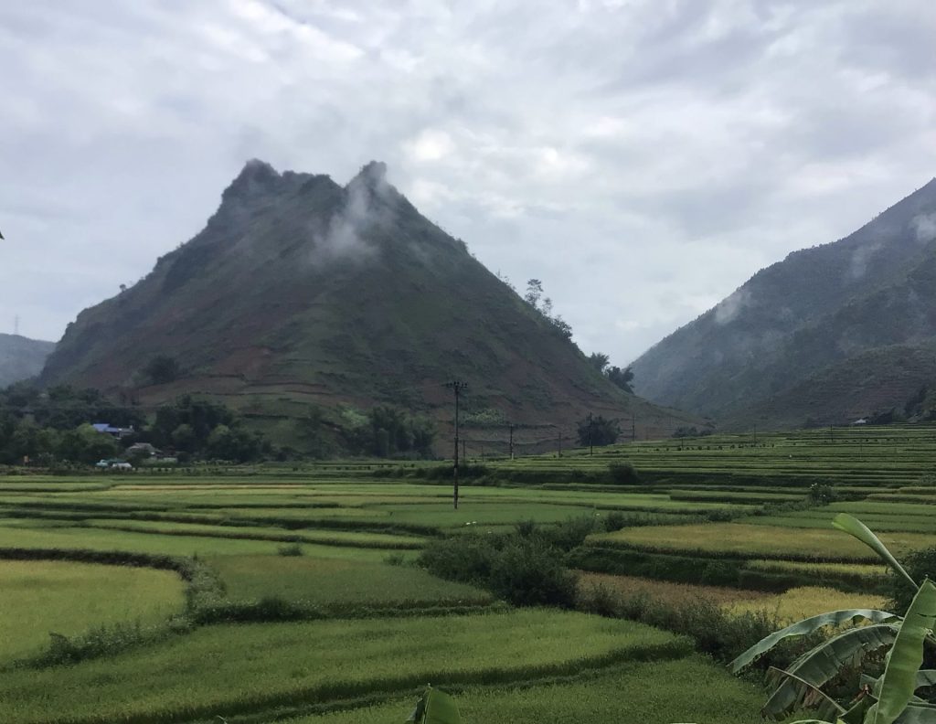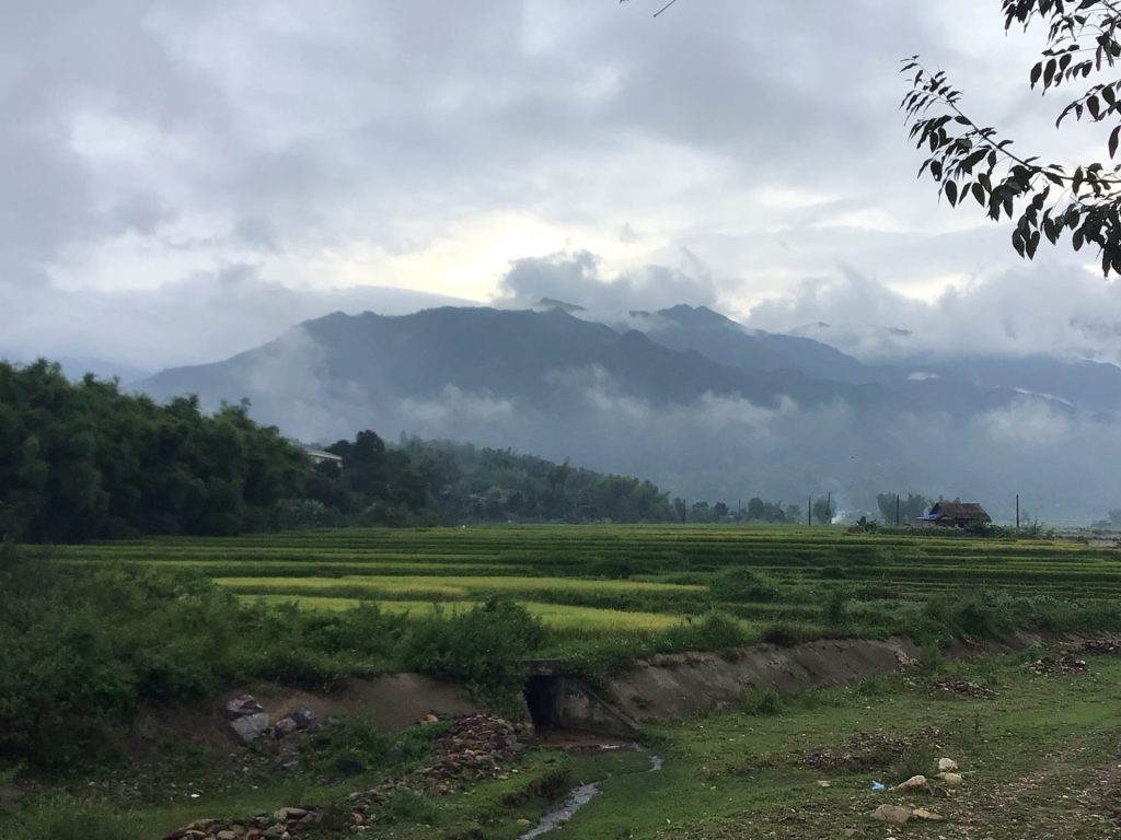 Je retrouve mes paysages enchanteurs avec ses rizières verdoyantes au premier plan et ses montagnes embrumées en arrière-plan. Je ne m’en lasse pas.