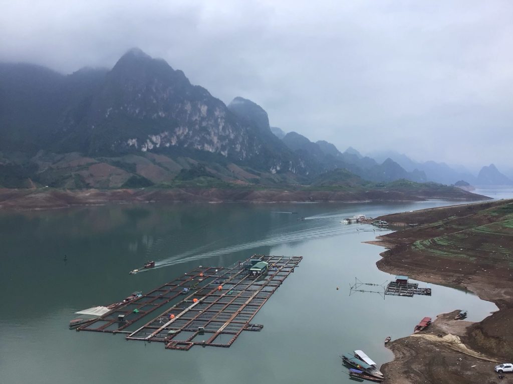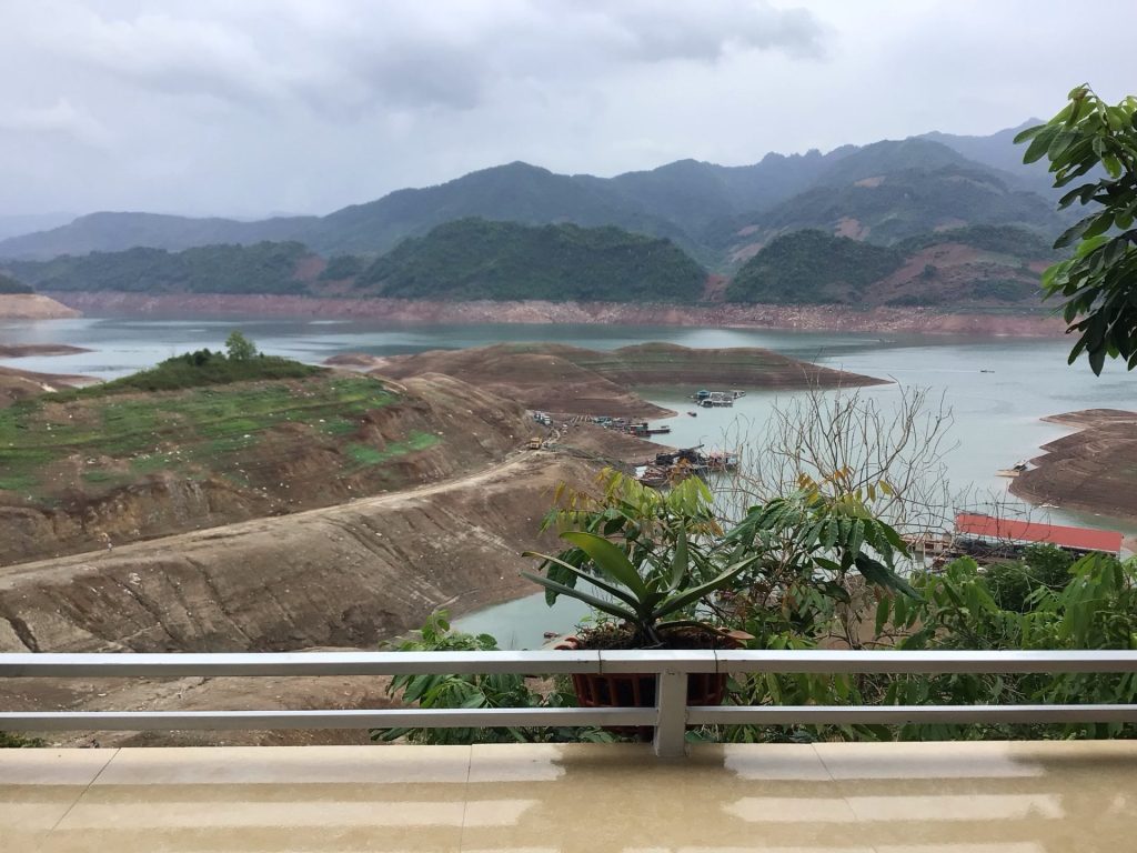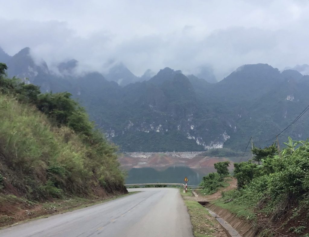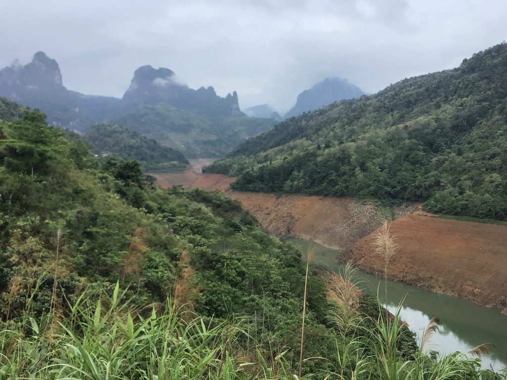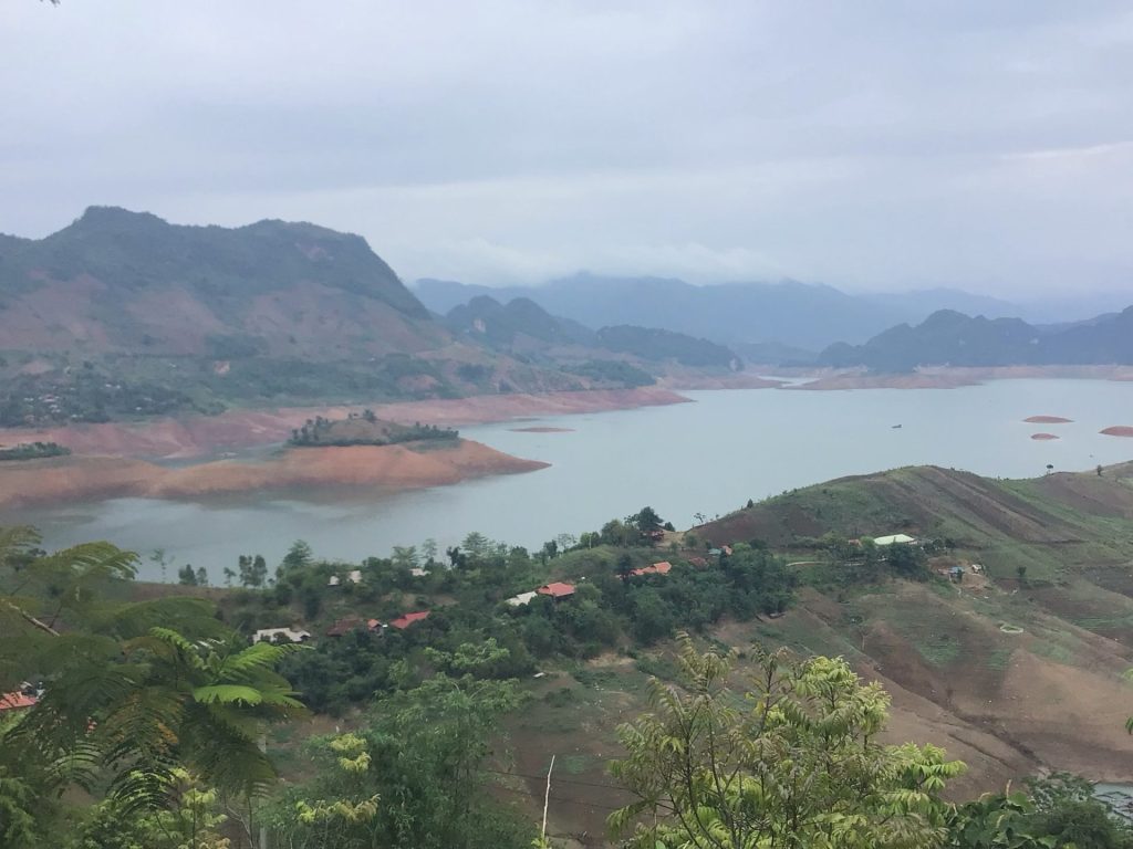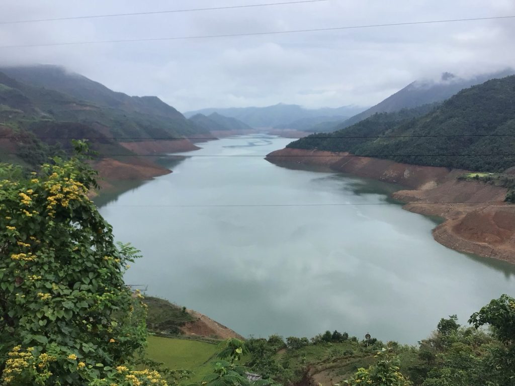 Je descends maintenant vers la rivière et les plans d’eau de Sông Dà. La descente est superbe mais toujours entrecoupée par ces tape-culs qui suivent le relief du contrefort des montagnes. Et, ces grimpettes d’une centaine de mètres tout à gauche debout sur les pédales, font vraiment mal aux cuissous. Ça chauffe Marcel !