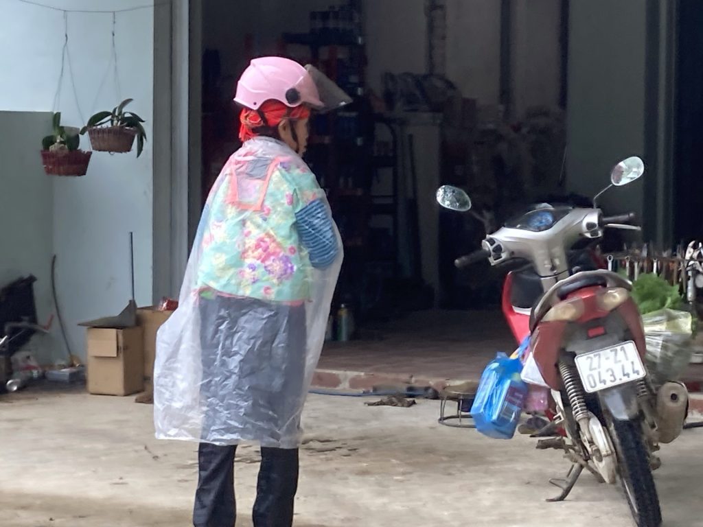 Je retourne en ville pour m’acheter un Bánh bao, au même endroit qu’hier soir, en guide de p’tit déj’. Sur ces entrefaites, un nouveau grain s’abat. Je patiente à l’abri en attendant que ça se calme. La journée s’annonce humide.