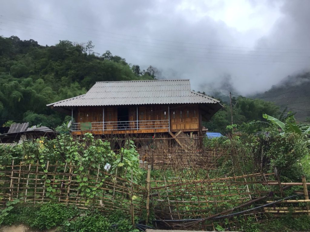 Il est temps de repartir. Je retrouve ma route QL279 sous un crachin breton. Je me dirige maintenant vers le village de Tuân Giáo aux confins de plusieurs vallées. Dans ces montagnes, toutes les habitations sont construites en bois. Il y en a d’anciennes avec de simples planches et un astucieux système de rangement de vêtements à l’extérieur …