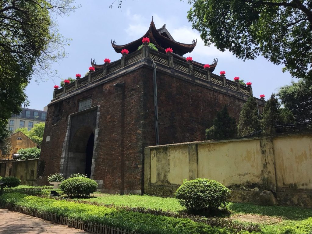J’opte finalement pour la seconde option. Plus vite, je serais sorti du Vietnam, mieux ça sera. Enfin, si j’arrive à sortir … Après mon cá phê den dá, je retourne donc au Dépt Immigration. Arrivé sur place, je cherche mon passeport dans ma sacoche et ne le trouve plus. Panique à bord. Je retourne ma sacoche. Rien. Sueurs froides. J’ai complètement zappé que je l’ai laissé à l’ambassade. Hallucinant. Je me fais déjà le film de mon rapatriement en France. En roulant, j’imagine que j’ai dû le laisser sur le bureau en remplissant mon dossier. Je passe devant la Citadelle Impériale où je m’arrête quand même faire une photo d’une des portes. Par contre, je n’ai vraiment pas la tête à faire une visite maintenant. Vers midi, je m’arrête quand même déjeuner dans une gargote.