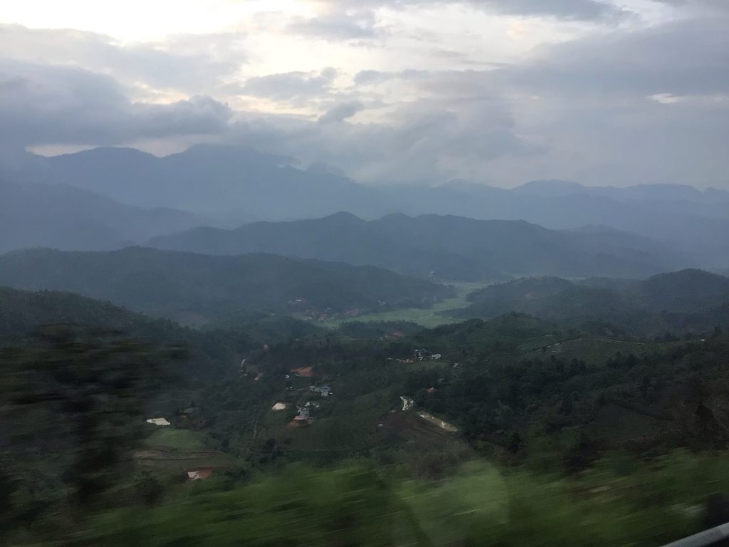 Alors où en étais-je resté de mes aventures rocambolesques ? Donc j’ai pris ce bus pour descendre sur Hanoï et voir pour ce visa. Vers 19h00, je repasse à Muong Dang. Le soleil se couche sur les montagnes alors que je finis de rédiger l’article d’hier en position couchée. En effet, le siège couchette n’est pas inclinable.