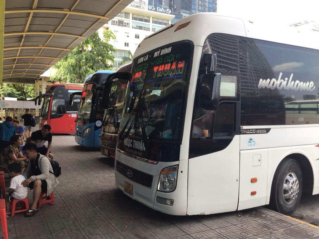 A 13h30, je suis le premier arrivé devant l’ambassade. Je retrouve mon fonctionnaire ronchon. Avant que je n’ai prononcé un mot, il me tend mon passeport et me fait signe de partir. Grand ouf de soulagement. Il me faut maintenant me rendre à la gare routière de My Dinh qui se trouve à 10 kms du centre. Je repars dans le bordel infernal de la circulation de cette capitale. Je n’avais encore jamais connu cela. Des scooters, des bagnoles et des bus partout. Des croisements avec 5 ou 6 routes. Des gars qui passent au rouge en klaxonnant ou qui coupent carrément les routes. D’autres qui déboulent en face sans ralentir toujours klaxon à fond. C’est hallucinant ! Et moi, et quelques autres fous, avec leurs p’tits vélos au milieu de ce merdier sans nom. J’arrive entier à la gare routière. Il est 14h40. La personne à l’accueil m’indique de me rendre au quai d’embarquement 48. J’y vais. Le bus m’attend !