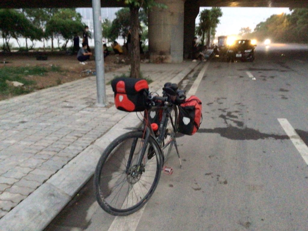 Après ce copieux diner, la nuit se déroule tranquillement en 52 soubresauts et 63 coups de klaxon. Je dors en pointillé. Je m’éveille à peine quand le bus s’arrête. Le contrôleur me tire de ma couchette et me demande de descendre. Mais le bus est arrêté sous un pont au milieu de nulle part sur un grand boulevard urbain. Je ne comprends pas trop d’autant plus que plusieurs jeunes dorment encore dans leur couchette. Je lui demande où nous sommes. Il me répond Hanoï. Je m’attendais à arriver en plein centre. Mais il m’explique que le bus va à Navy et contourne la ville. Je descends. Il est 5h du mat’ et je n’ai plus sommeil !