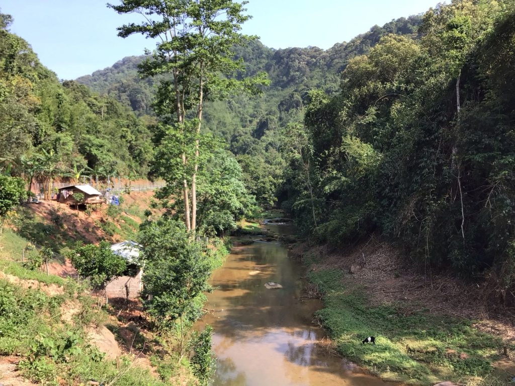 Réveil à 6h30 du mat’. Je suis un peu dans l’expectative. Je n’arrive pas à avoir la confirmation pour savoir si cette frontière est ouverte ou pas. Le cerbère de l’ambassade du Laos m’a dit que oui. Mais j’ai un doute. Et les infos sur les sites ne sont pas clairs. De toute façon, si ça ne colle pas, je devrais me résoudre à remonter à Diên Biên Phu. Sinon, les autres postes frontières sont trop au sud vu que j’aimerais faire le nord du Laos. A 7h00, je décolle et je verrais bien. Je ne suis plus à un jour près. Je quitte cet hôtel tranquille sous un beau ciel bleu.