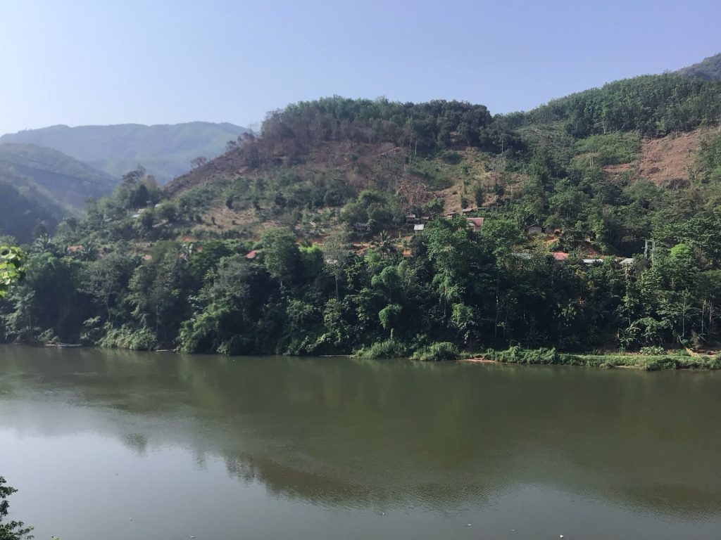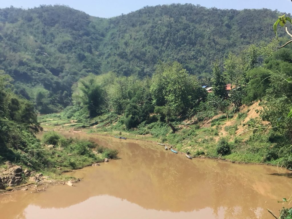 De même, il n’y a pas d’eau courante. L’eau provient de captage dans les montagnes et arrive via des tuyaux au bord des fossés. Ce matin, j’ai aperçu une vieille femme, seins nus cachés par un tee-shirt, qui arrivait du fossé où elle venait de faire sa toilette. J’ai vu aussi quelques hommes en slip qui finissait leurs ablutions matinales. De même, le linge et la vaisselle sont lavés dans des bassines alimentées par ces tuyaux de captage. Par décence, je n’ai pas photographié ces scènes. Je pense d’ailleurs que ces montagnes sont un des endroits les plus pauvres aperçus depuis mon départ. Après 30 kilomètres et 1.500m de D+ et D-, je rejoins la rivière Ou qui se jette dans le Mékong à Muang Pak Ou situé au nord de Luang Prabang.