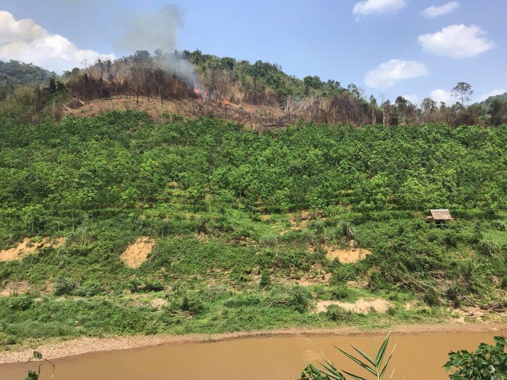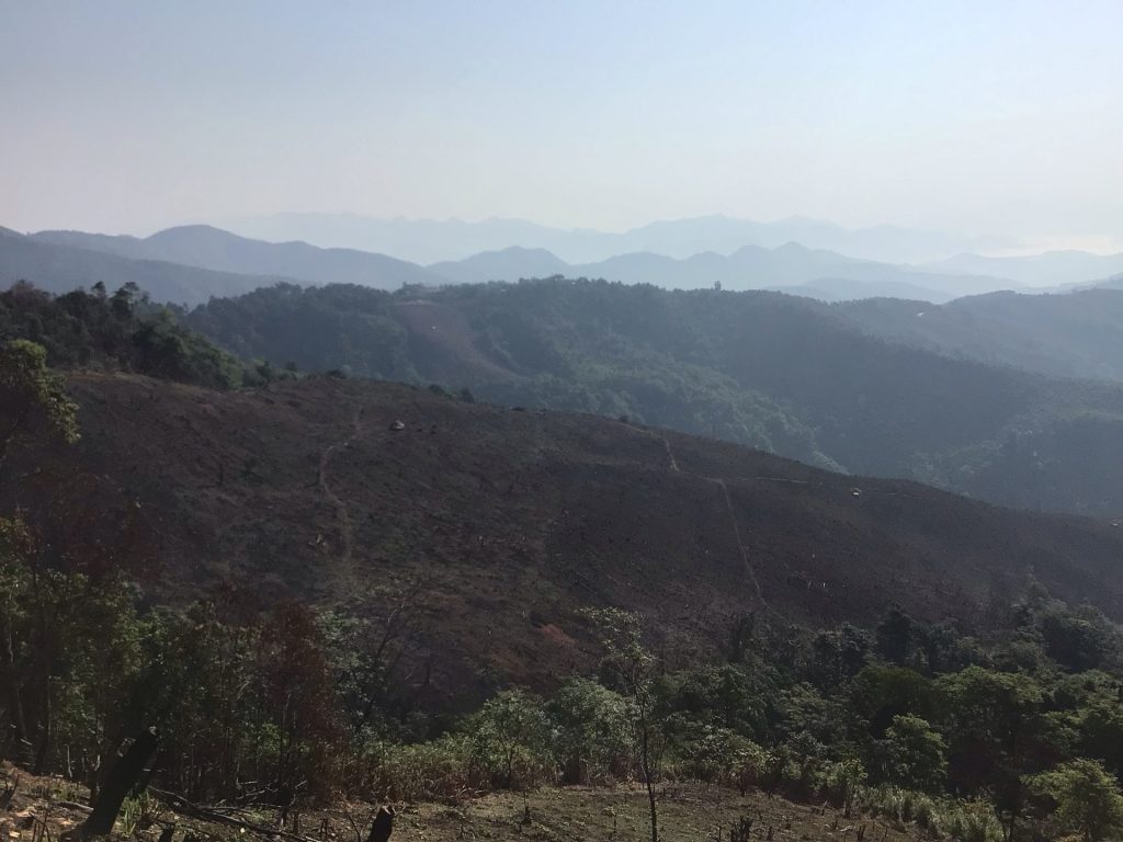 J’avance cependant bon train malgré les bosses et le vent. A ce rythme, je devrais arriver vers 15h00. Alors que je roule à bonne allure, j’entends comme une pétarade au loin. En effet, c’est un feu de forêt et ce sont les arbres qui crient de douleur. A force de tout brûler, la ressource va finir par s’épuiser. Comment feront ces peuples des montagnes pour survivre sans bois ?