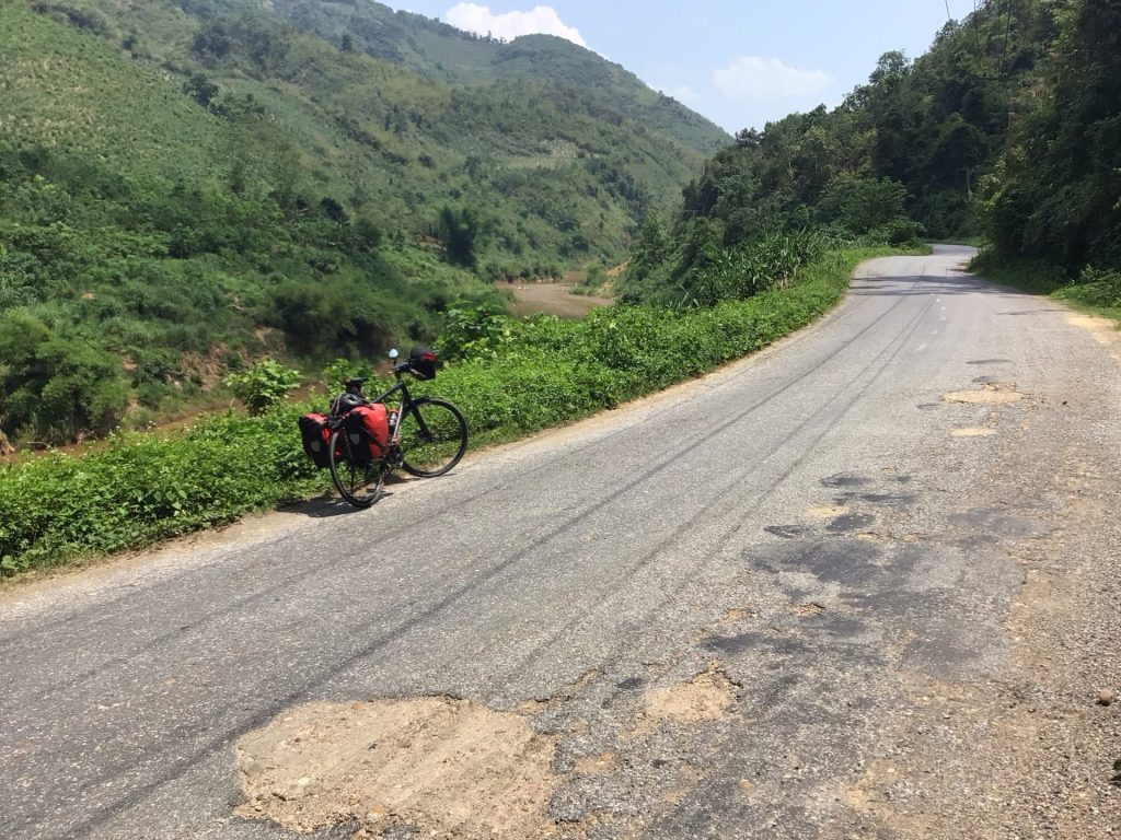 Je pars plein ouest en empruntant la route nationale 2E qui a débuté à la frontière laotienne. Le soleil levant est derrière moi. Tout va bien. Je suis dans la bonne direction plein ouest avant de replonger au sud.