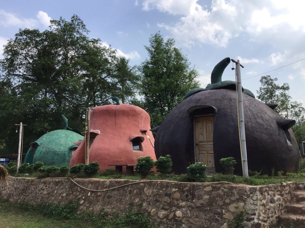 Par contre, j’ai oublié de prononcer les 2 mots magiques « No spicy ». Le boss doit me prendre pour un laotien vu que ma salade est bien pimentée. Ça passe quand même. En parlant du patron, je viens de retrouver l’expression « ne pas perdre la face » correspondant à certaines attitudes typiquement asiatiques. Notamment, lorsque j’ai été refoulé dans des hébergements alors que je venais de réveiller le gérant, lorsque je me suis fait envoyer sur les roses alors que je négociais un prix à la baisse, lorsque hier j’ai poireauté une vingtaine de minutes à son comptoir avant que je lui propose un prix acceptable, … Comme les thaïs, personne ne vous dira jamais « Non. ». Ils vont vous envoyer n’importe où, vous faire un signe de la main pour dire que c’est plus loin ou un autre signe pour vous envoyer paître. Après ce premier repas de la journée, je vous emmène faire le tour du propriétaire. Voici donc ma petite maison de Schtroumpf. La mienne est la verte.