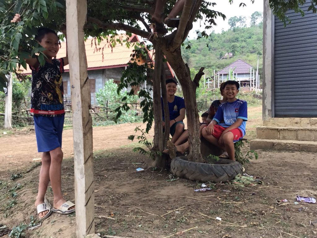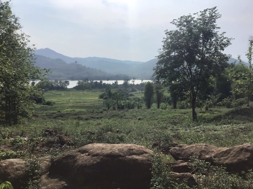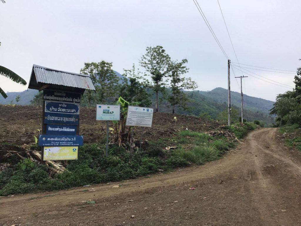 Je ne sais pas comment je ne pète pas un truc sur le vélo tellement ça secoue. Haka2 est vraiment résistant. Qu’est-ce que je lui en fais voir le pauvre ! A 15h30, je rejoins enfin la piste qui longeait le Mékong. J’aurais dû la suivre. Cela ne pouvait pas être pire que celle-ci. Et je n’ai toujours pas trouver de route carrossable. Comme indiqué sur le panneau, ce village fait partie du programme « Village Women Union – 3 aspects to be considerated as good ». LAO Women’s Union
