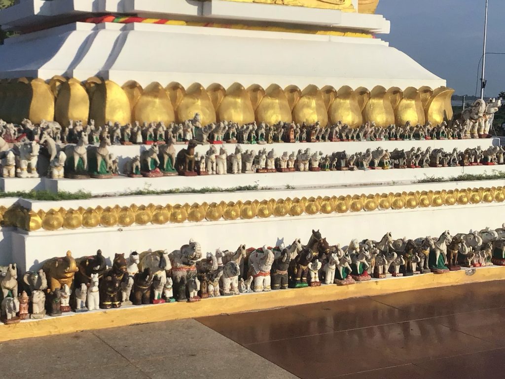 Peu après 9h00, j’entre dans Vientiane en empruntant un cheminement en construction le long du Mékong. Que c’est agréable d’entrer dans de grandes agglomérations en longeant un cours d’eau. Il faut dire aussi que cette capitale de 1 million d’habitants n’est vraiment pas impressionnante. Et que les buildings n’y ont pas encore poussé comme des champignons.
