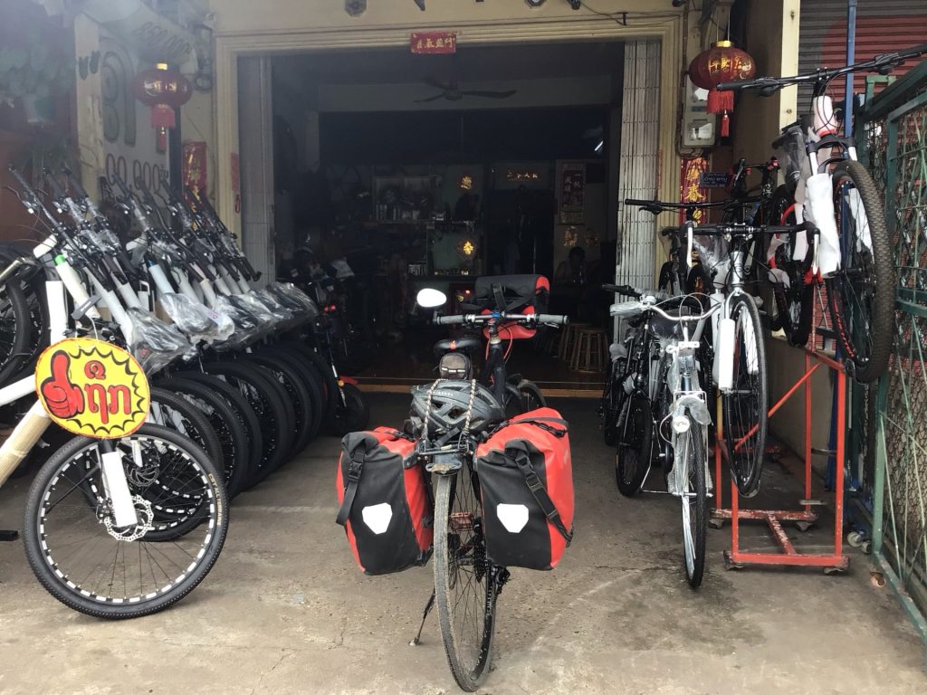 La première chose que je fais en arrivant dans le centre est de trouver un vélociste. A part huiler la câblerie et tenter de régler les butées, il ne me change rien. Il me dit qu’il faudrait changer toute la distribution (câblerie, K7, chaîne voire dérailleur). Je ne vais pas me lancer dans une telle opération alors que je rentre sur Bangkok. J’essaierais de vendre Haka2 en l’état. Sinon il faudra que j’envisage de le rapatrier et que je me charge de le remettre en l’état dans mon atelier. Je pense que le plus ardu est derrière moi. Et j’espère que ça tiendra jusqu’au bout.