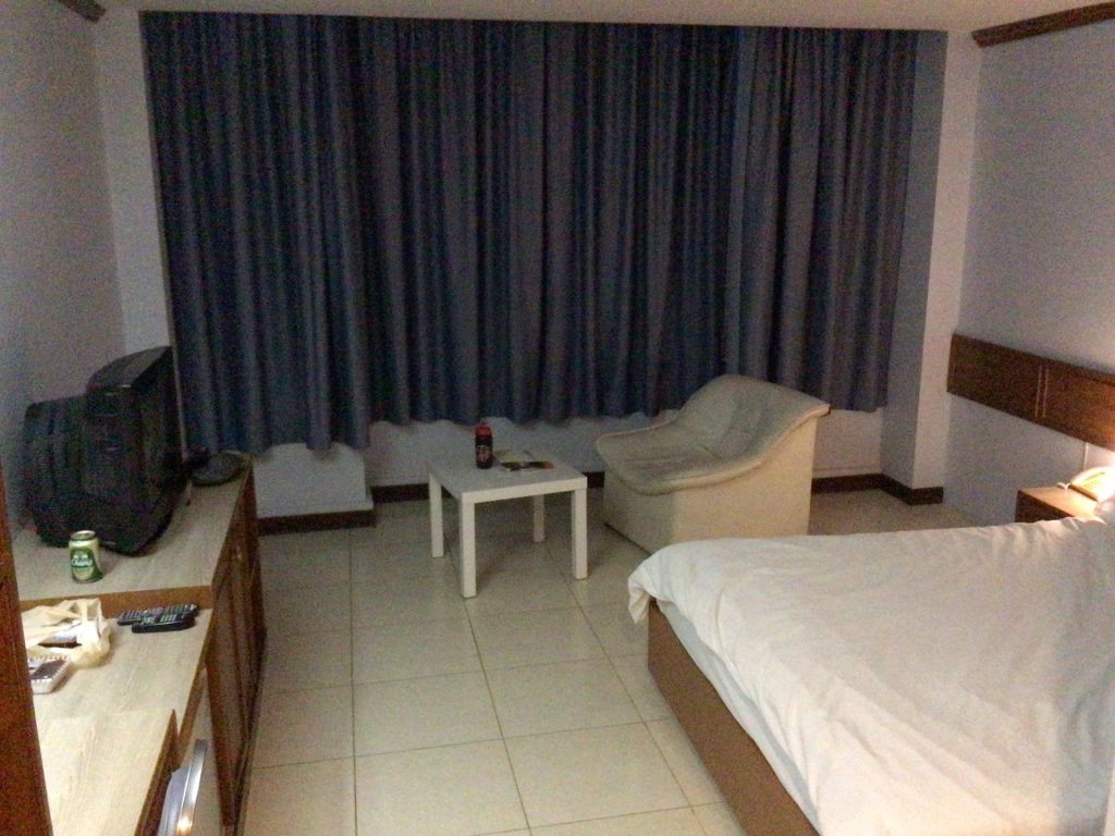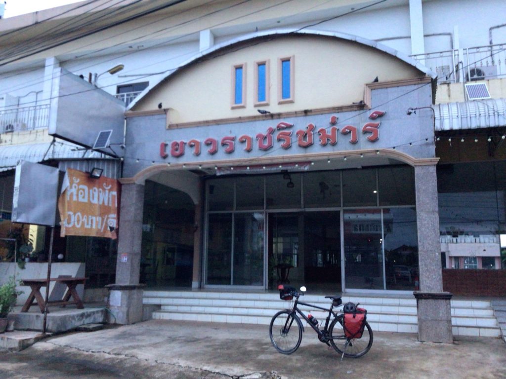 J’arrive en ville. C’est toujours aussi moche. Je me dirige direct vers l’hôtel repéré. Il s’agit d’un bel hôtel moderne en sortie de cette ville. Je me doute que le prix va être un peu plus élevé que d’habitude. Mais je n’ai vraiment pas envie de partir à la recherche d’un autre hébergement. J’ai envie de me poser, de prendre une douche et d’aller déjeuner. Entre le vent et la chaleur moite, je suis bien entamé. Je profite ce petit cocon douillet pour me refaire la cerise avant les derniers coups de pédale.