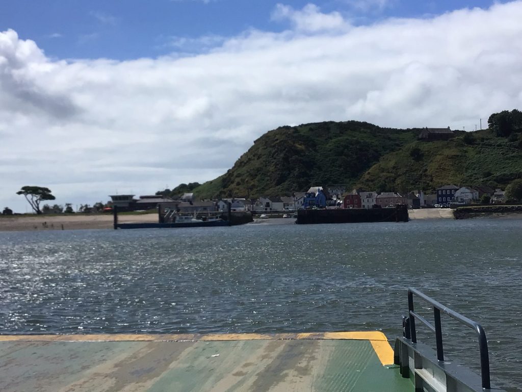 Je retrouve l’EV1 et longe à nouveau un estuaire avant de prendre le ferry pour le traverser. J’arrive dans le charmant village au nom de roman d’espionnage Passage East. Je trouve un snack à la terrasse bien ventée pour casser la croûte d’un sandwich poulet/bacon accompagnée d’une salade Caesar Chicken pour manger un peu de verdure.