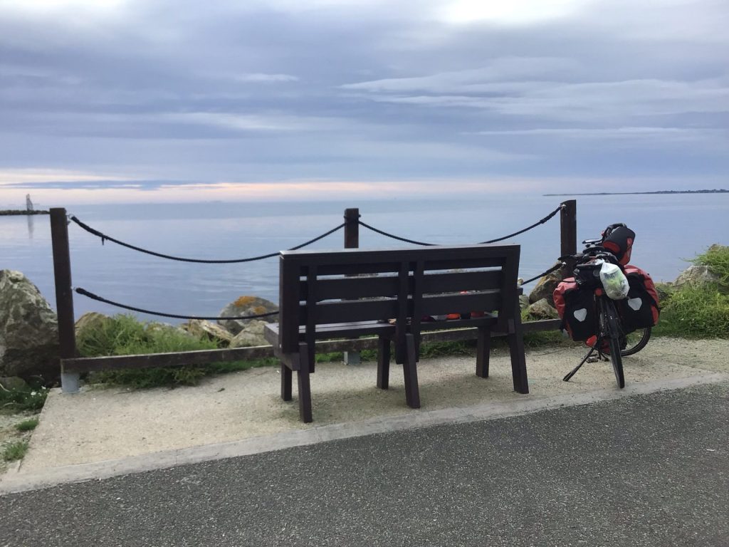 Alors que j’emprunte une route secondaire, je suis surpris de tomber sur un panneau EuroVélo. Il s’agit de l’EV1 (la Route de l’Atlantique) qui parcourt tout l’ouest de l’Europe.