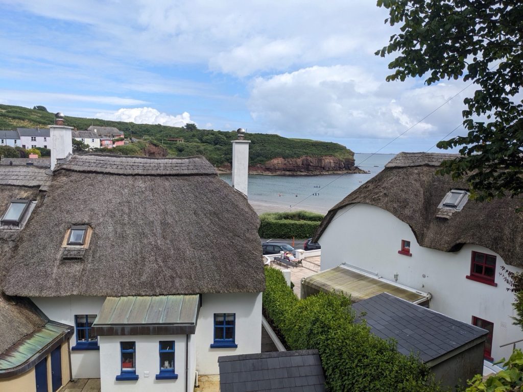 J’emprunte toujours l’EV1. Cependant, je trouve qu’il y a beaucoup de monde sur cette petite route. Je comprends pourquoi en arrivant au village de Dunmore. En ce dimanche, les terrasses sont blindées. La plage à l’abri de la baie semble également bien appréciée sous ce soleil bienvenu.