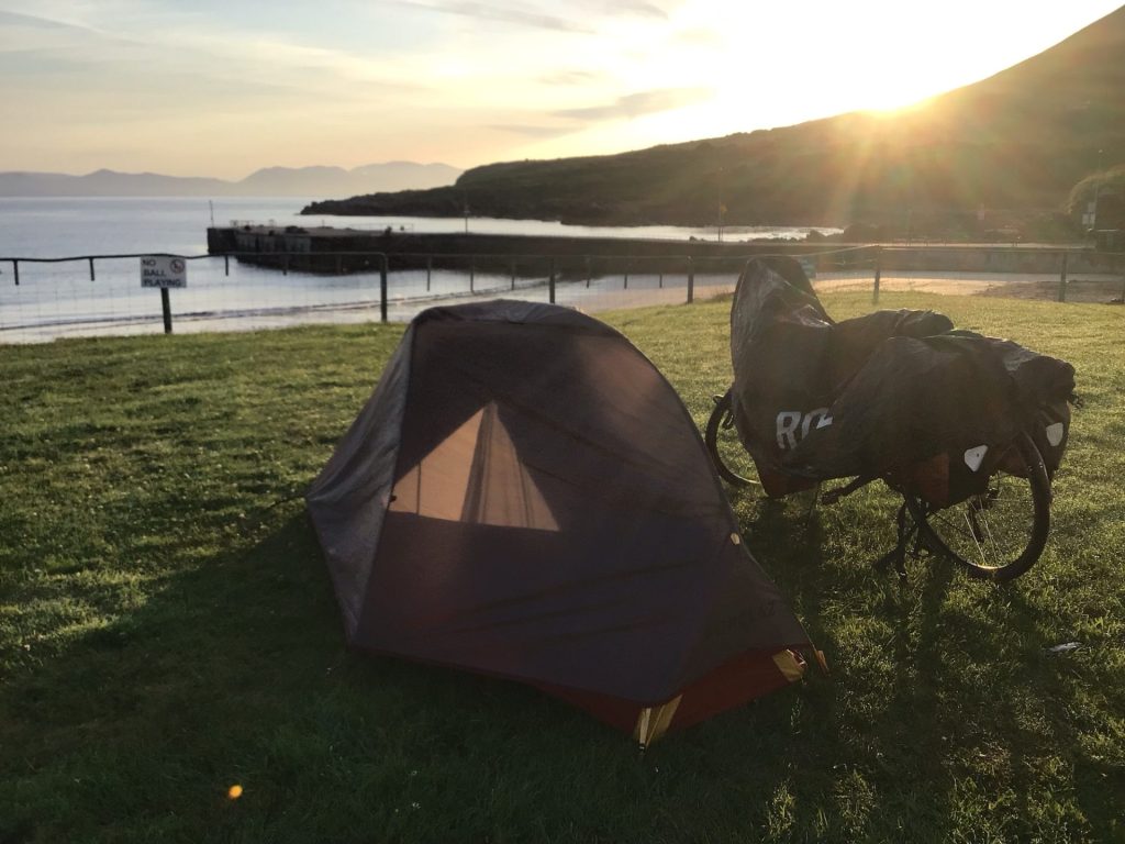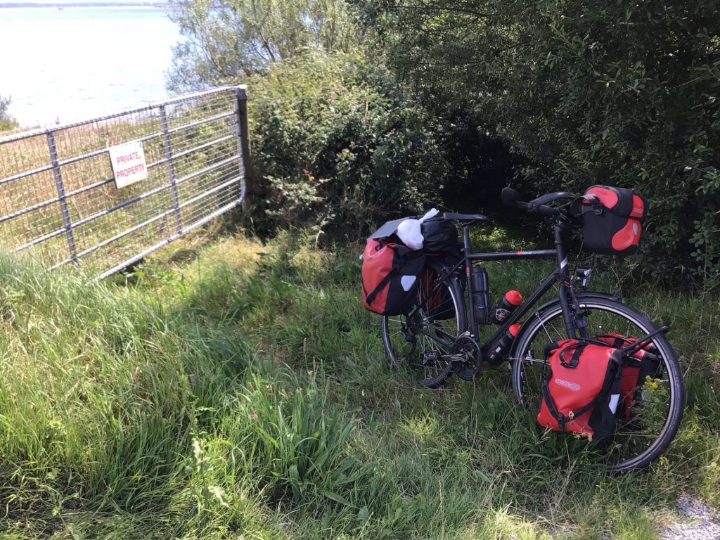 Je finis d’écrire ces lignes dans une ambiance survoltée. L’équipe, supportée par les gens du coin, a dû gagner. Quant à moi, il me faut maintenant trouver un endroit où passer la soirée au calme. Je m’éloigne de la ville en suivant la côte le long d’une petite route bordée sur la droite par quelques maisons avec vue sur mer et sur la gauche par des champs accueillants. Une barrière est ouverte. Je m’y engage. Parfait ! Je plante ma tente à l’angle du champ.