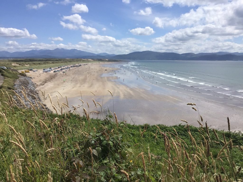 Après ce repas et cette sieste ô combien appréciés, je reprends la route qui longe cette péninsule. Peu après, je m’arrête boire un expresso juste avant d’arriver à Inch Beach. Je comprends pourquoi il y avait tant de monde sur cette route. Ils sont tous sur cette longue plage de sable qui forme une langue en travers de l’estuaire.