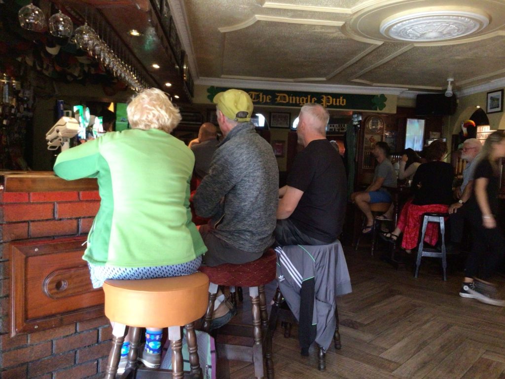 A 16h30, j’entre enfin dans Dingle. Je fais une nouvelle pause dans un des nombreux pubs de cette petite ville portuaire. Le pub est à nouveau bondé. Ils sont tous en train de regarder, sur plusieurs écrans, un match de football gaëlique (mix de foot et de rugby). Apparemment, les JO, ici, ils n’en ont rien à secouer ! Je vous explique pas l’ambiance. Même les femmes braillent comme des truies hommes (après censure).