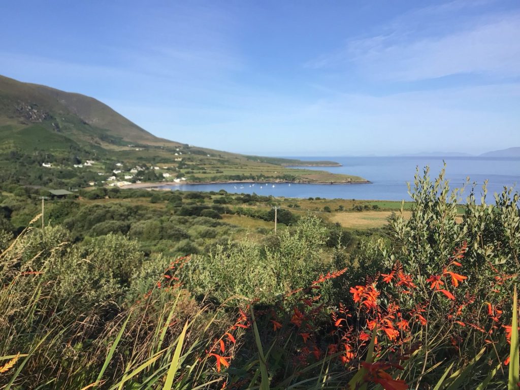 Alors que les cloches de la grande église en pierre de Killoglin sonne 10h00, j’arrive dans cette charmante bourgade qui ferme la baie.